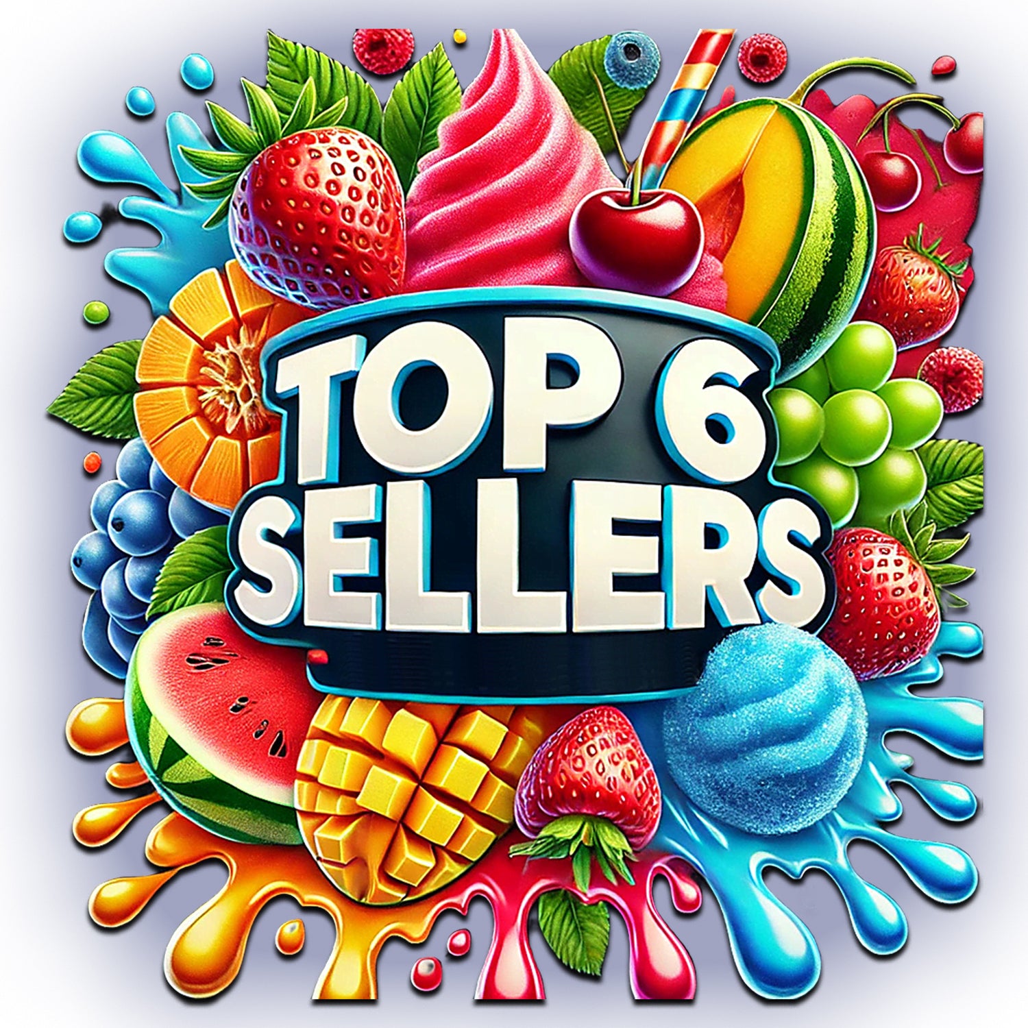 Strawberry, Lime, Pina Colada, Lychee, Peach and Mojito